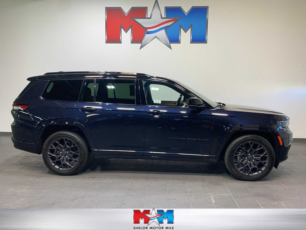 Engine: 3.6L V6 24V VVT UPG I w/ESS, Transmission: 8-Speed Automatic (8HP50), 950 Watt Amplifier, Deluxe Headliner, Palermo Leather Door Trim, Summit Reserve Badge, Ventilated Rear Seats, Summit Reserve, Wheels: 21 x 9 Black Painted Aluminum, Painted Door Cladding, Gloss Black Exterior Accents, Neutral Gray Exterior Accents, Wireless Charging Pad, 2nd Row Manual Window Shades, TRANSMISSION: 8-SPEED AUTOMATIC (8HP50), (STD). Jeep Summit Reserve with Midnight Sky exterior and Global Black interior features a V6 Cylinder Engine with 293 HP at 6400 RPM*.