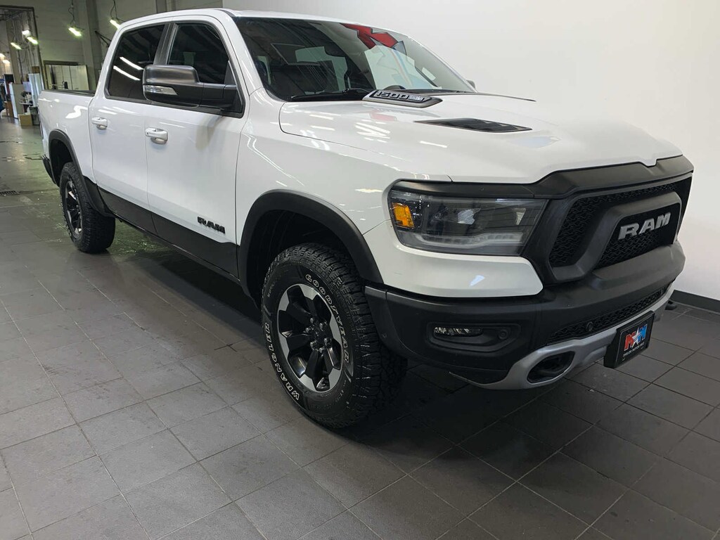 Radio: Uconnect 4 w/8.4 Display, Rear Window Defroster, Rain Sensitive Windshield Wipers, ParkSense Front/Rear Park Assist w/Stop, Power Adjustable Pedals, Rear Dome w/On/Off Switch Lamp, Body Color Door Handles, 115V Auxiliary Rear Power Outlet, Media Hub w/2 Charge Only USBs, Auto Dim Exterior Driver Mirror, Rear Underseat Compartment Storage, Heated Front Seats, Heated Steering Wheel, Foam Bottle Insert (Door Trim Panel), Security Alarm, Black Premium Power Mirrors, Remote Start System, Exterior Mirrors w/Supplemental Signals, Exterior Mirrors Courtesy Lamps, Air Conditioning ATC w/Dual Zone Control, Remote Proximity Keyless Entry, Universal Garage Door Opener, Power-Folding Mirrors, Sun Visors w/Illuminated Vanity Mirrors, Active Noise Control System, Heavy Duty Engine Cooling, Dual Exhaust w/Black Tips, GVWR: 7,100 lbs, HEMI Badge, 23 Gallon Fuel Tank, 18 Aluminum Spare Wheel, TRANSMISSION: 8-SPEED AUTOMATIC (8HP75). Ram Rebel with Bright White Clearcoat exterior and Black interior features a 8 Cylinder Engine with 305 HP at 6400 RPM*. New Tires, Local Trade-In