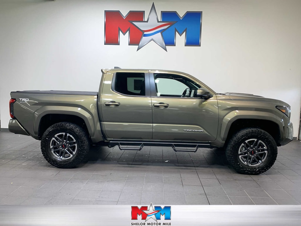 Power Tilt/Slide Moonroof w/Sliding Sunshade, 3D Panoramic View Monitor, selectable front, side and rear views, Digital Rearview Mirror, auto-dimming, compass and HomeLink universal transceiver, Pre-Wire Accommodation (Bed Power Port), Deck Storage Box, Heated Leather-Trimmed Steering Wheel, Radio: 14 Toyota Audio Multimedia w/TRD Premium, touchscreen, wireless Apple CarPlay® and Android Auto® compatibility and SiriusXM w/3-month Platinum Plan trial subscription, See toyota.com/audio-multimedia for details, JBL Premium Audio, 10 speakers w/JBL FLEX portable Bluetooth® speaker, subwoofer and amplifier, Power Horizontal Rear Window, 120V/400W AC Power Inverter, TACOMA Stamped Power Open & Close Tailgate, hands-free knee lift assist, integrated taillight bump switches and jam protection, Heated, PREDATOR STEP (TMS), SPRAY-ON BED LINER (TMS), ALL WEATHER FLOOR LINERS (TMS). Toyota TRD Sport with Bronze Oxide exterior and Black interior features a 4 Cylinder Engine with 278 HP at 6000 RPM*. Local Trade-In